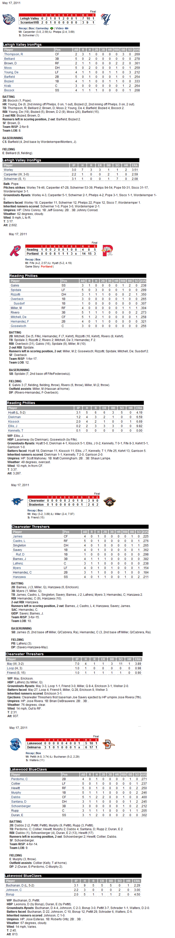 Whoops, that wasn’t worth posting twice, sorry. 3 errors for Galvis. A lot of strange things in Reading. In Clearwater, May continues to miss bats both in and out of the strike zone, but I love his K’s.