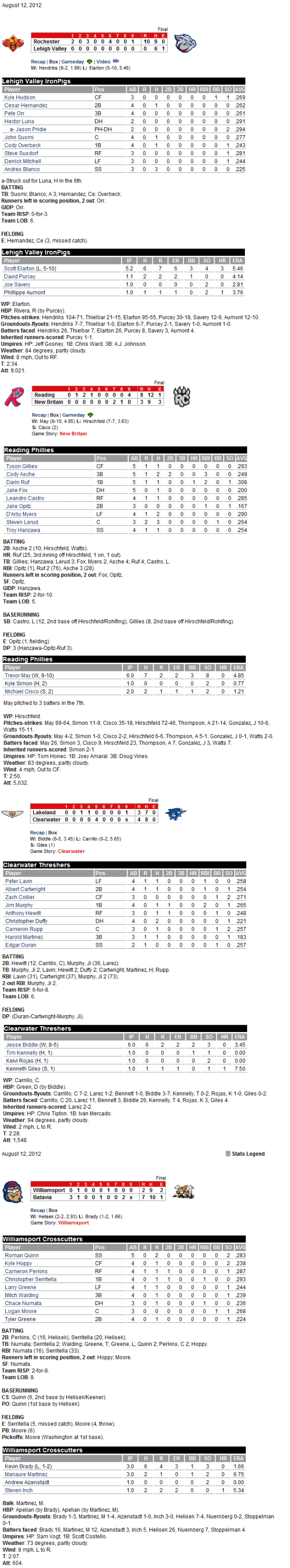 Box Score Recap 8-12-2012