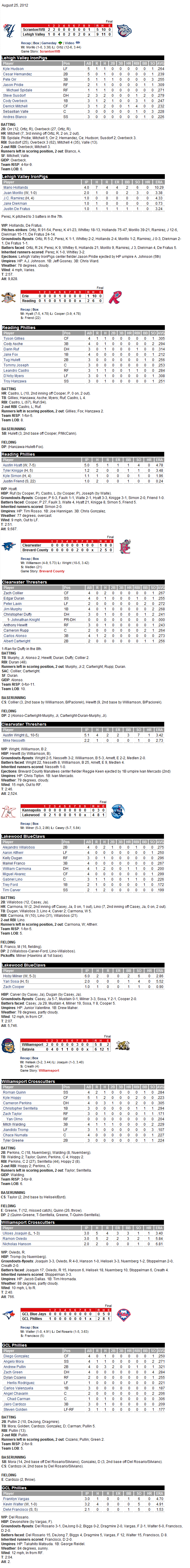 Hard to complain about this line from Hoby Milner – 6 scoreless IP, 2H, 2BB, 6K. Curious to see what kind of year he puts together in 2013. A transition from the U of Texas bullpen this season to starting in A ball seems to have gone fairly well, with a very strong August.