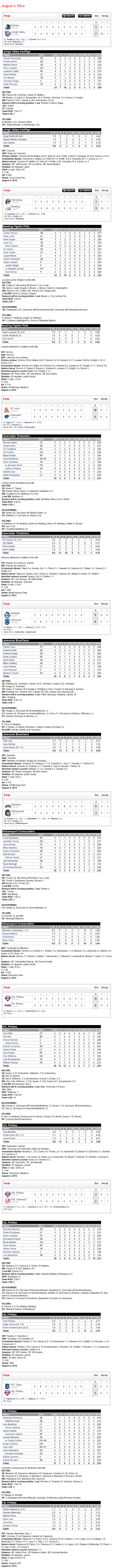 Here’s the affiliate Scoreboard from MiLB. http://www.milb.com/scoreboard/index.jsp?sid=milb&org=143&ymd=20140804