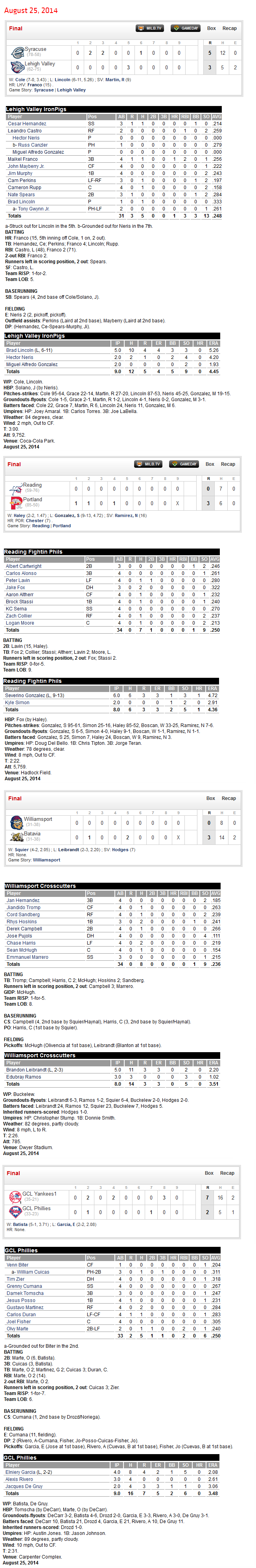 Here’s the affiliate Scoreboard from MiLB. http://www.milb.com/scoreboard/index.jsp?sid=milb&org=143&ymd=20140825