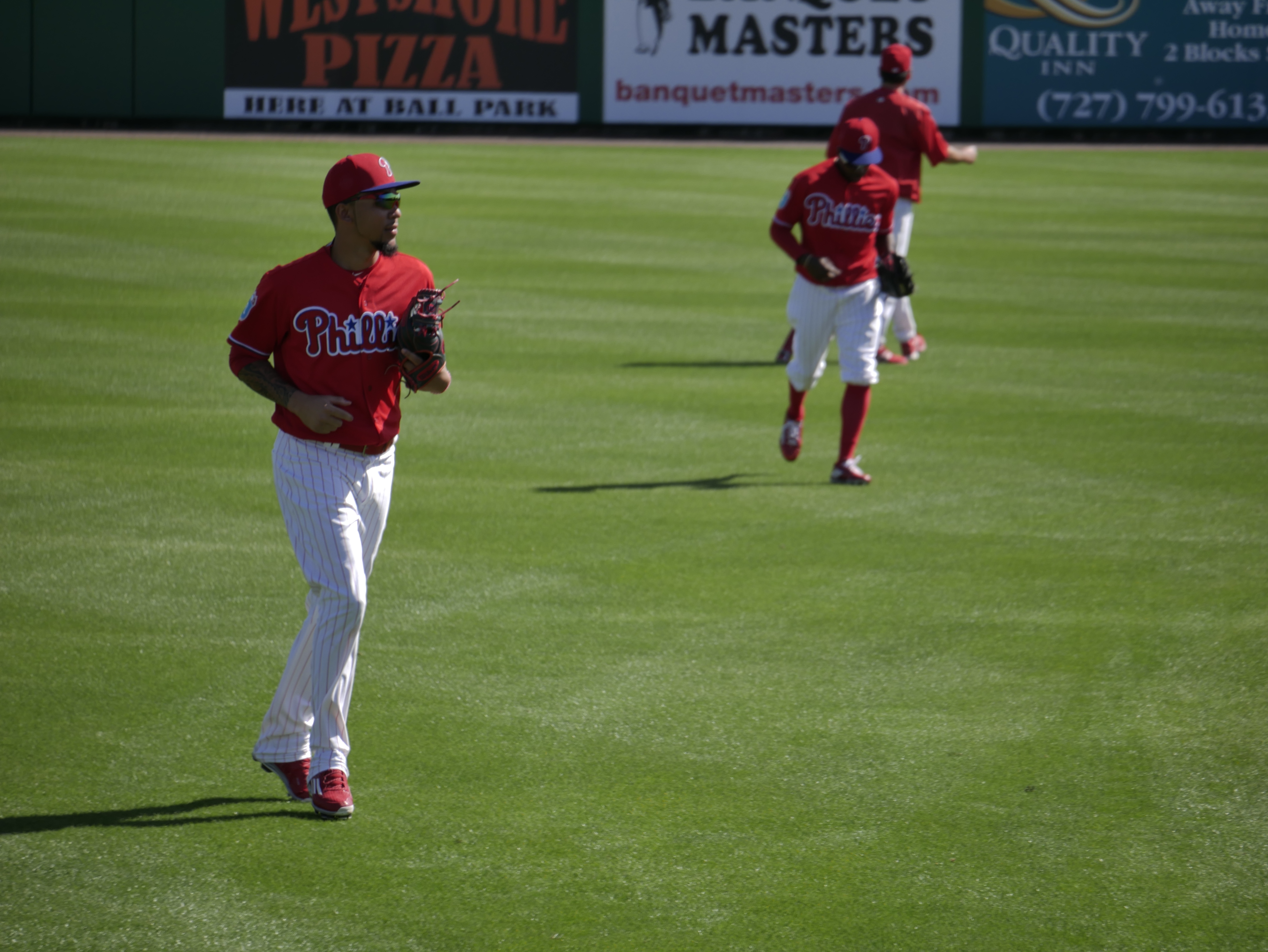 Over in Bright House Field, Odubel Herrera impressed with his hustle going back for fly balls during BP.  Saturday, he was the only guy trying to shag flies.  He looked good retreating back to the warning track from a shallow position.  I’m becoming a believer.