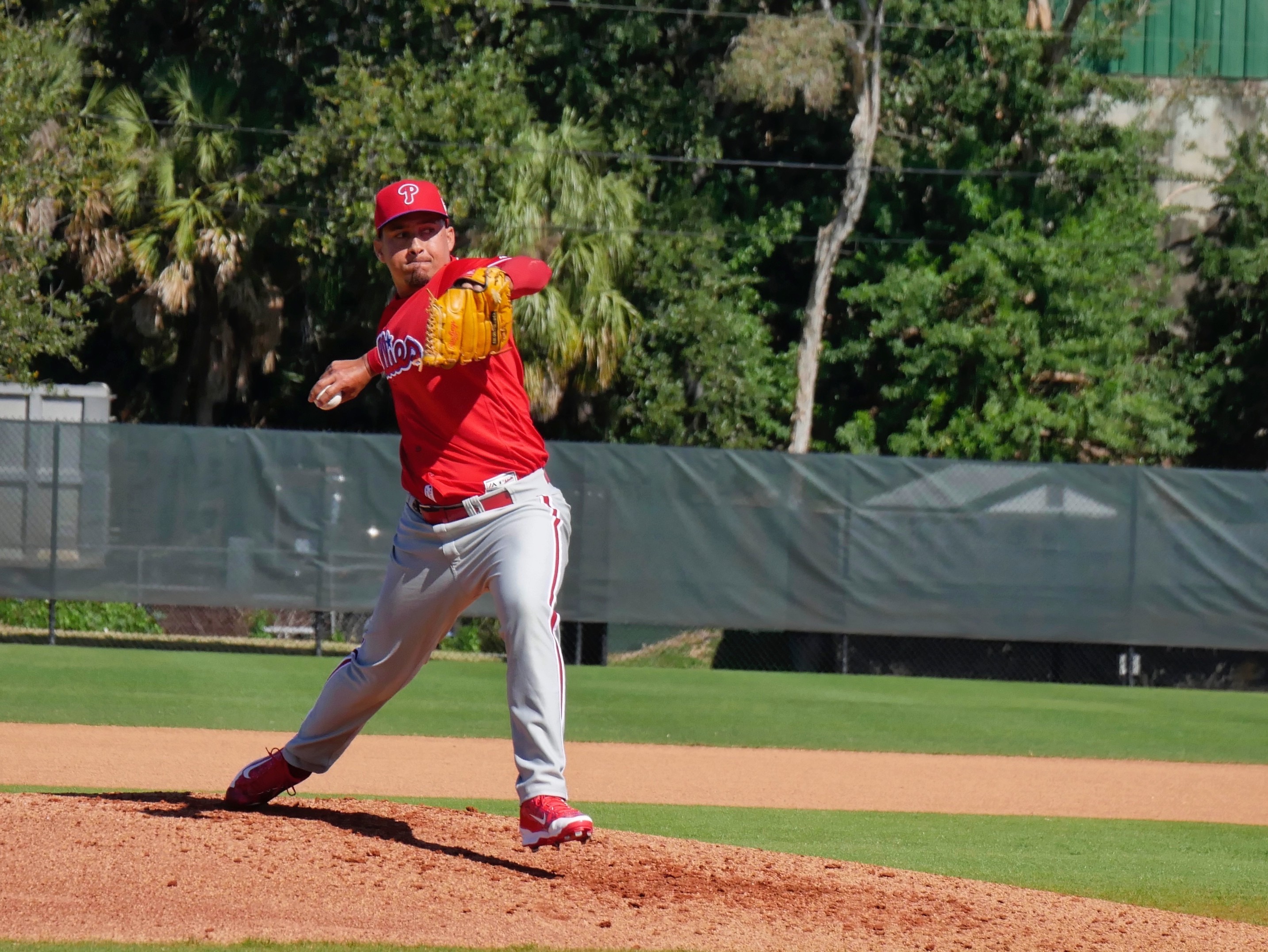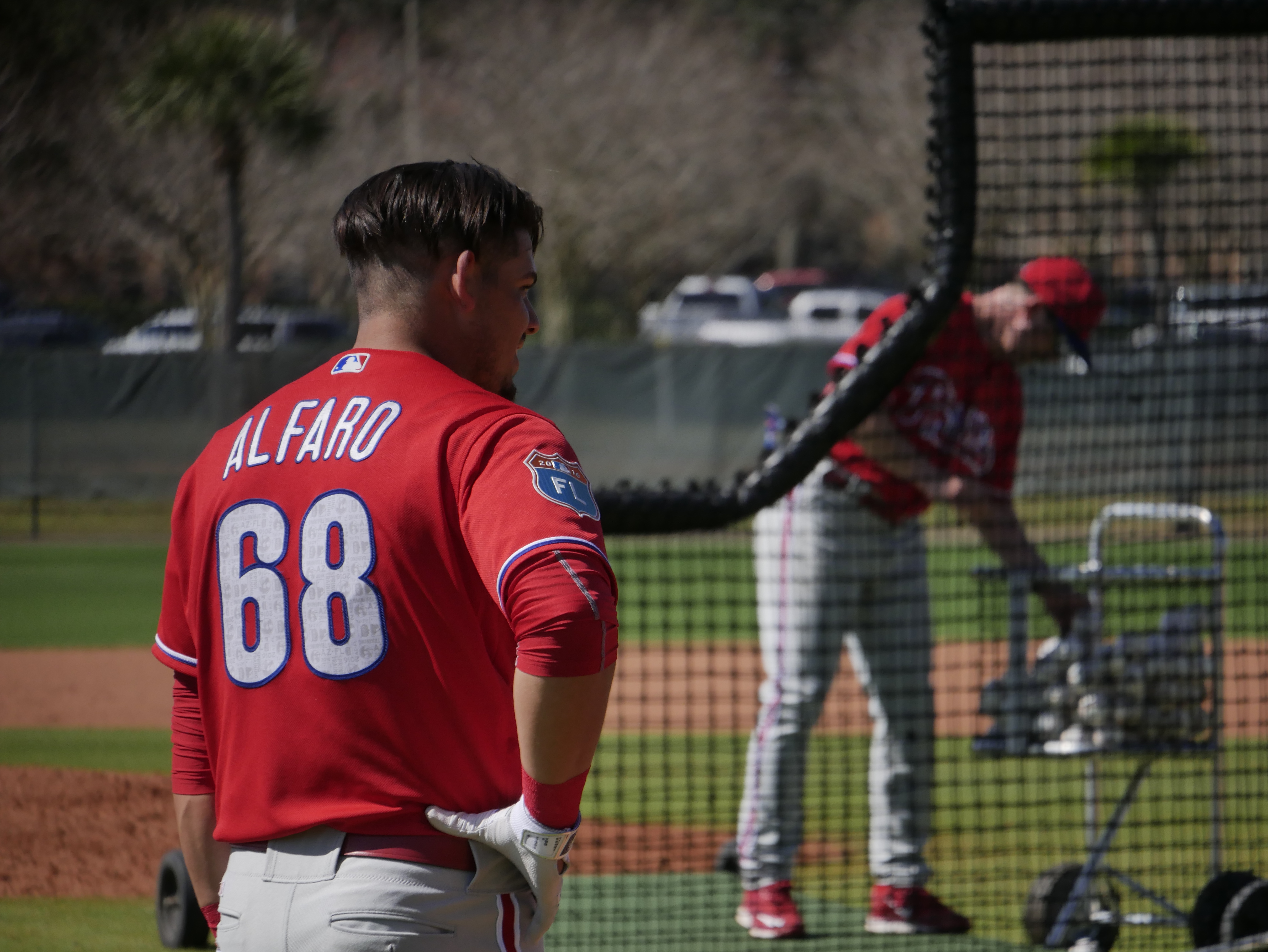 There are a lot of minor league players here.  It’s not unusual for extra catchers to be brought to camp.  We think we’ve identified Cabral, Brodzinski, and Bossart so far.  Most of the pitchers are here.  The extra catchers and position players like Tim Zier and Carlos Alonso are among those acting as batters during live pitching for guys like Nola , Thompson, and Eflin.
