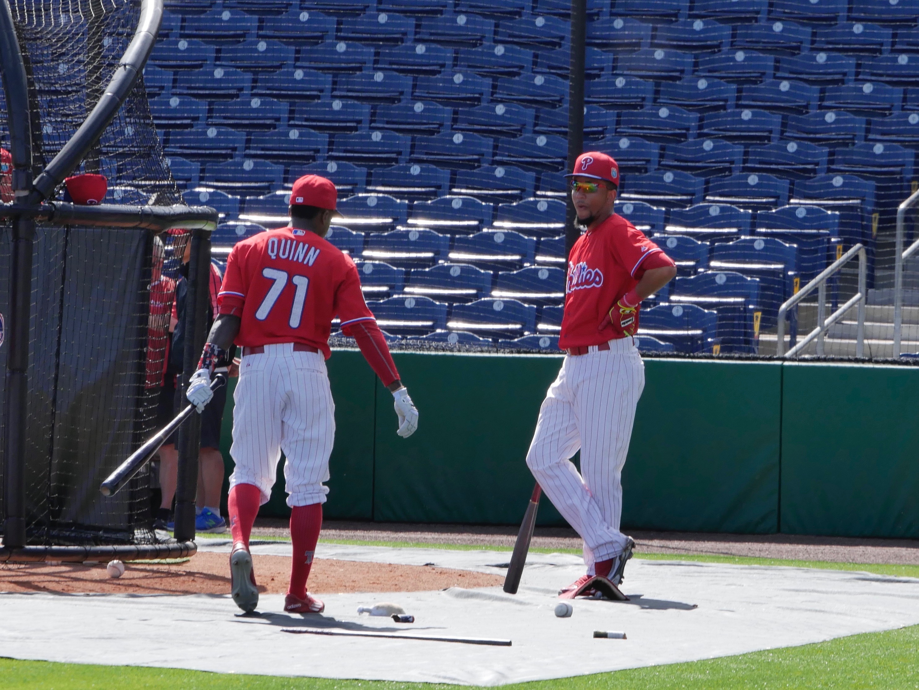 Roman Quinn was part of the group with Crawford. Quinn got a couple of line drives off Nola while I was watching.