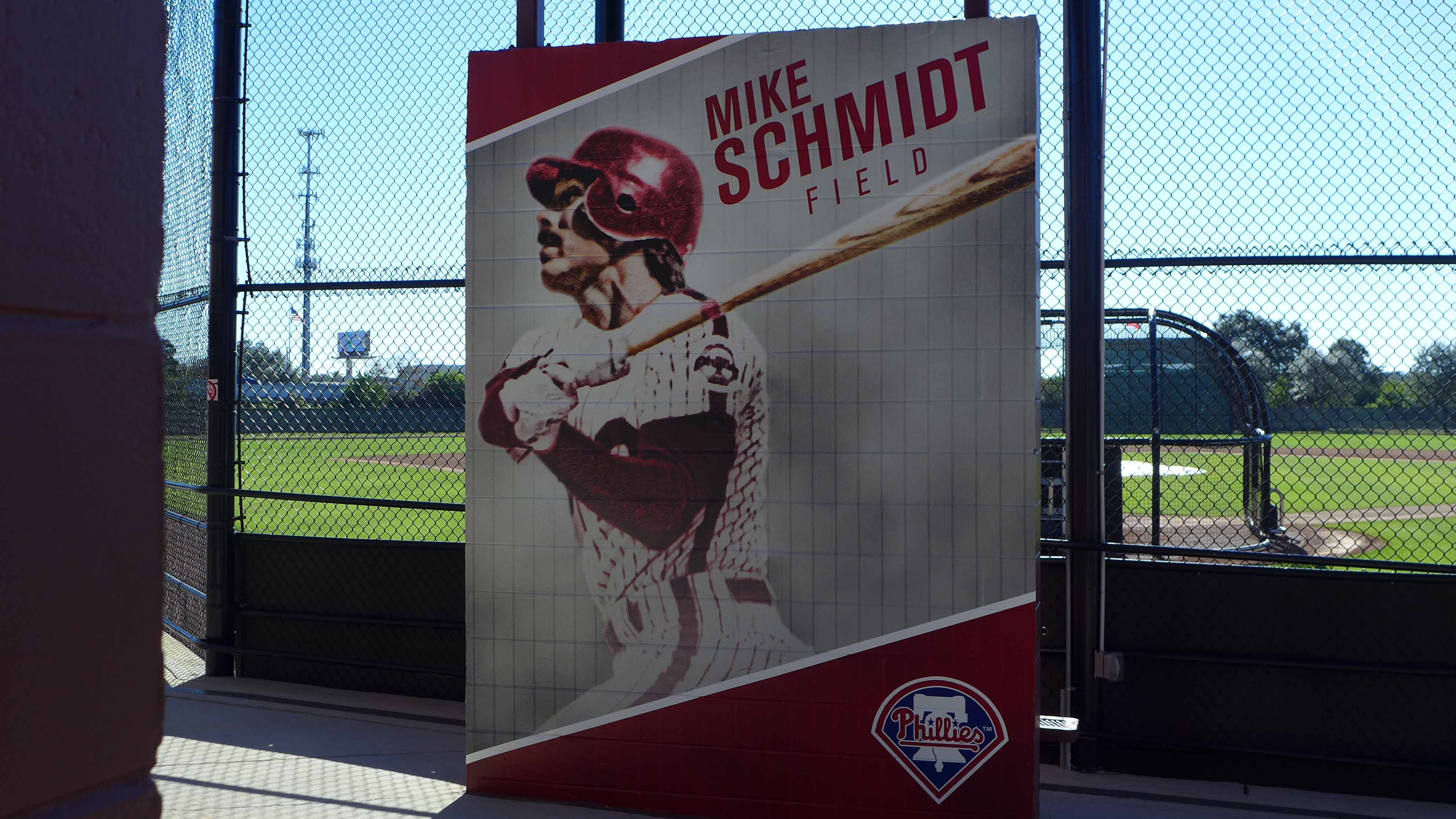 Some more changes at the Complex – they removed the plaques from the walls behind home plate on each field. The plaques had a bust of the player the field was named after and a brief description of career highlights. They were replaced with these –
