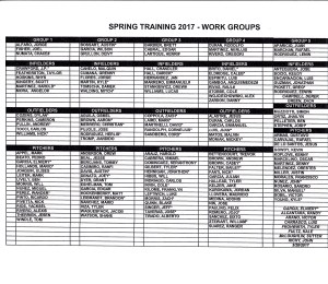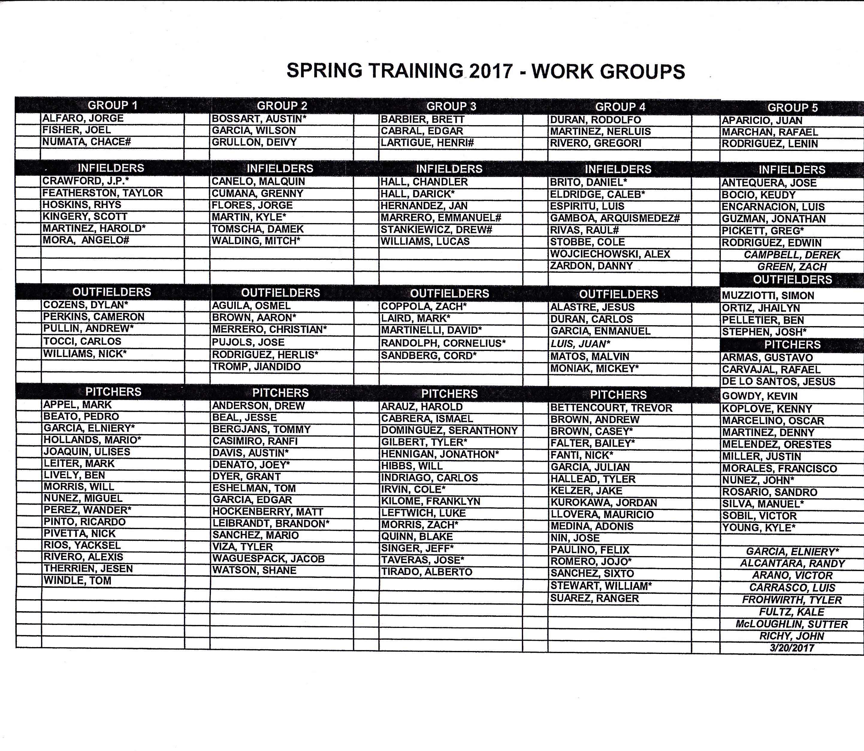 The groups are very close to resembling the final rosters, especially among the position players. Shawn Williams has taken over Group 3 and Marty Malloy has taken over Group 4. You can now consider the groups as follows –