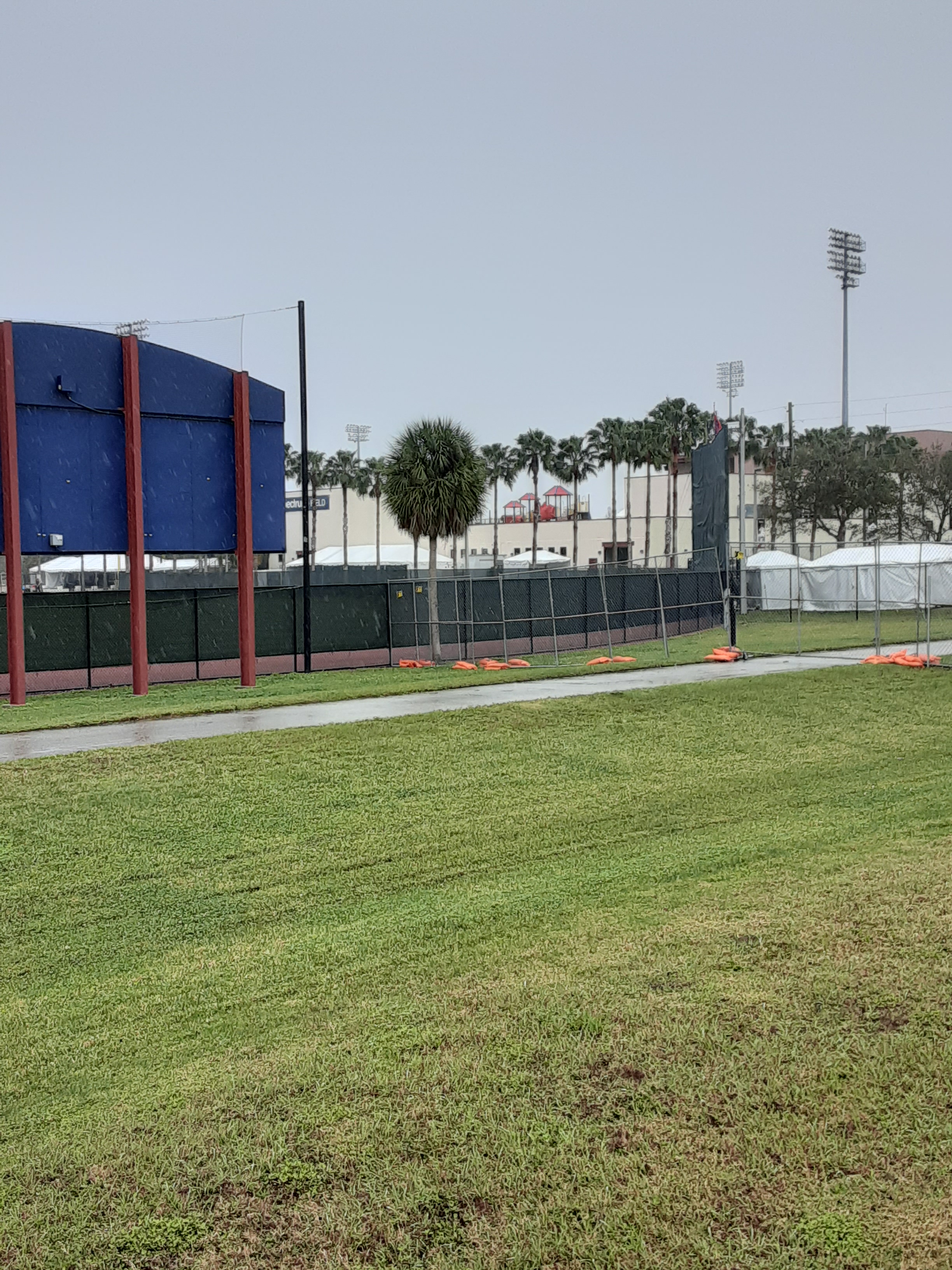 No position players were out.  We heard the soothing sound of bat on ball coming from the tunnel under the stadium.  I’m guessing any BP was moved indoors.  At this time of spring training, BP is held in the stadium.  I’m sure it will be closed to spectators this year.