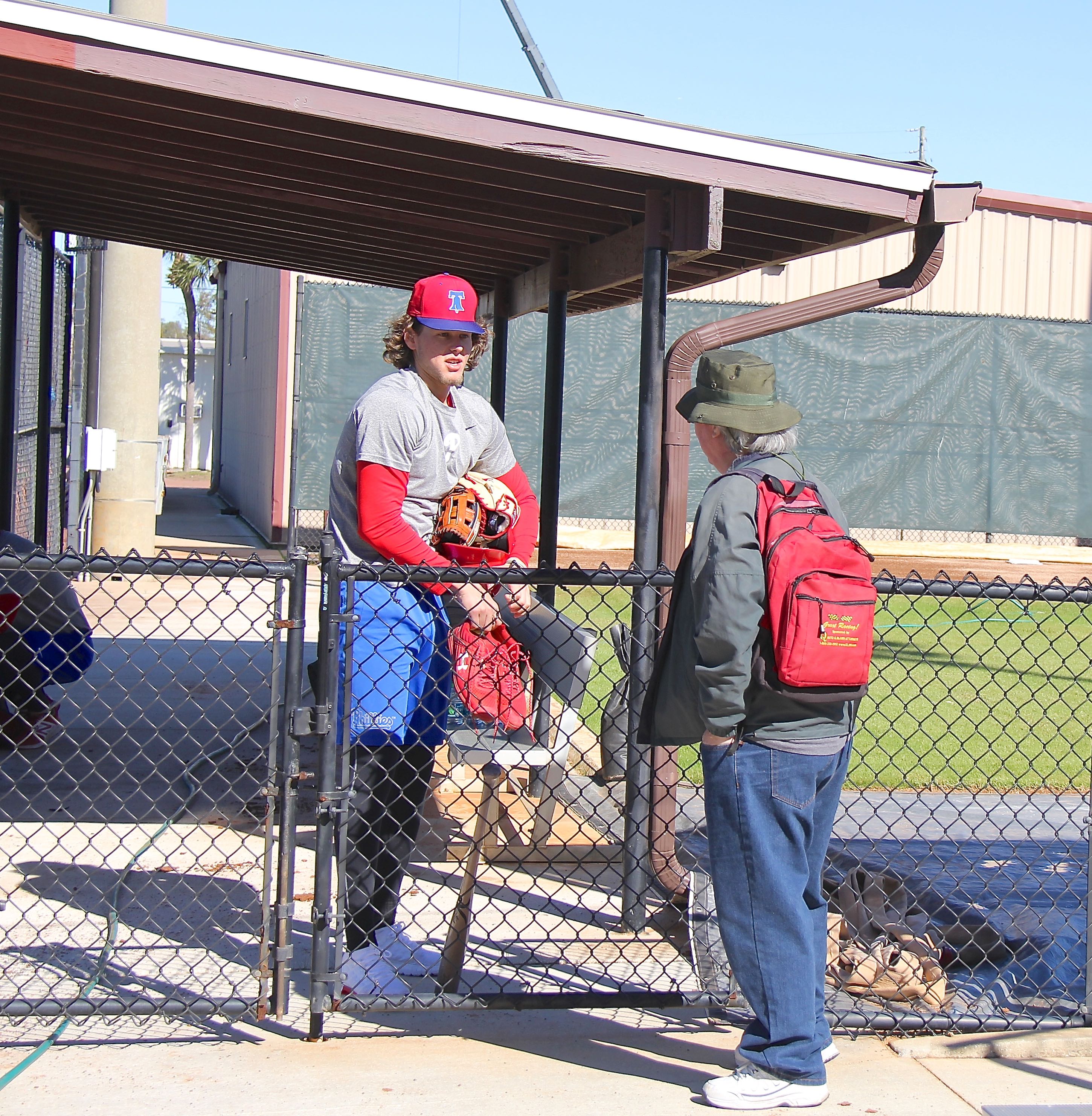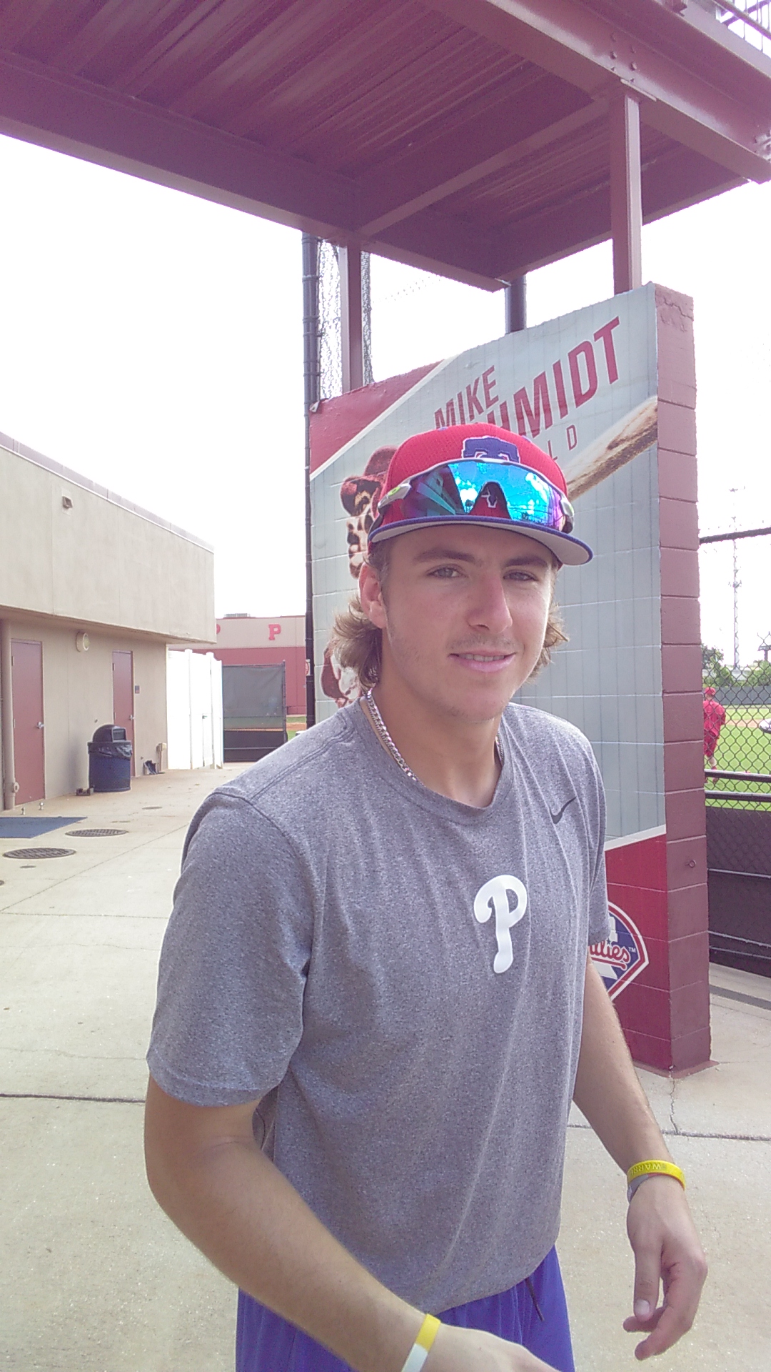 I arrived at the Complex at 10:40 AM. The guard, Rick, told me that I missed batting practice which had ended at 10:20 AM. (I found out today that BP consisted of Andrew Knapp, Rafael Marchan, and Jeff Mathis. It started at 10:05 and lasted just 15 minutes.)