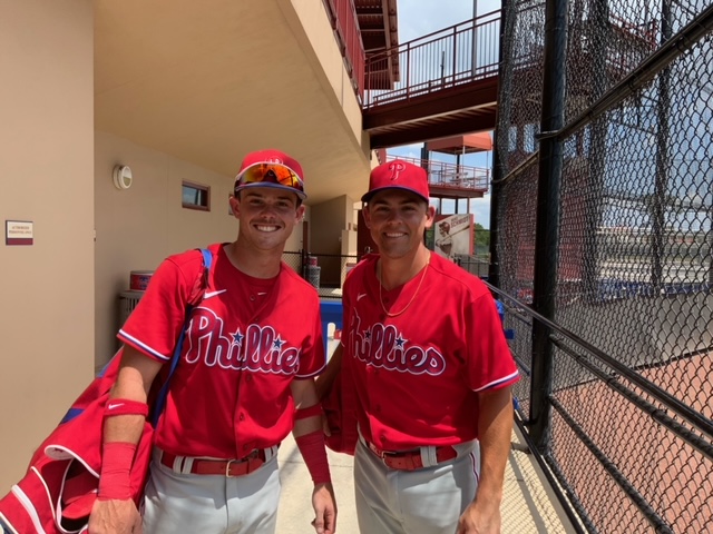 Scott Kingery is still recovering from shoulder surgery during the offseason (or was it maybe last summer?). It wasn’t until this afternoon when he lobbed a ball underhand from the on deck circle that I realized that he wasn’t making throws earlier this week when he and Brito were taking ground balls at second. There wasn’t a first baseman and they were both rolling balls to a bucket. The Phillies are showing a lot of care as they rehab his shoulder. He DH-ed today. He was taking hard swings while on deck. That led me to wonder doesn’t that action put any stress on his shoulder. Physically, he reminds me more of Clearwater Kingery than post-Clearwater Kingery.