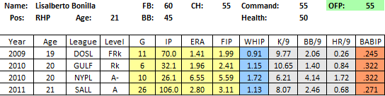 11. Lisalberto Bonilla, RHP (2011 Rank = NR)