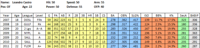 2011 In Review: Castro had a deceptively good year in the pitcher friendly Florida State League but missed half the season with a stress fracture in his left leg. I haven’t read that it will limit him in 2012.