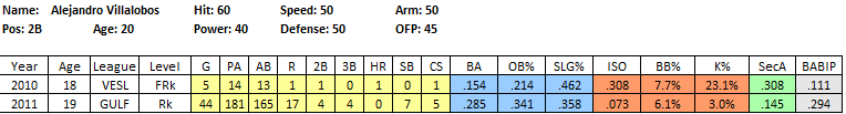 2012 Expectations: He’ll come to the US for spring training, then debut in the GCL, where he’ll play most of the season at age 16 and be one of the youngest guys in the league.